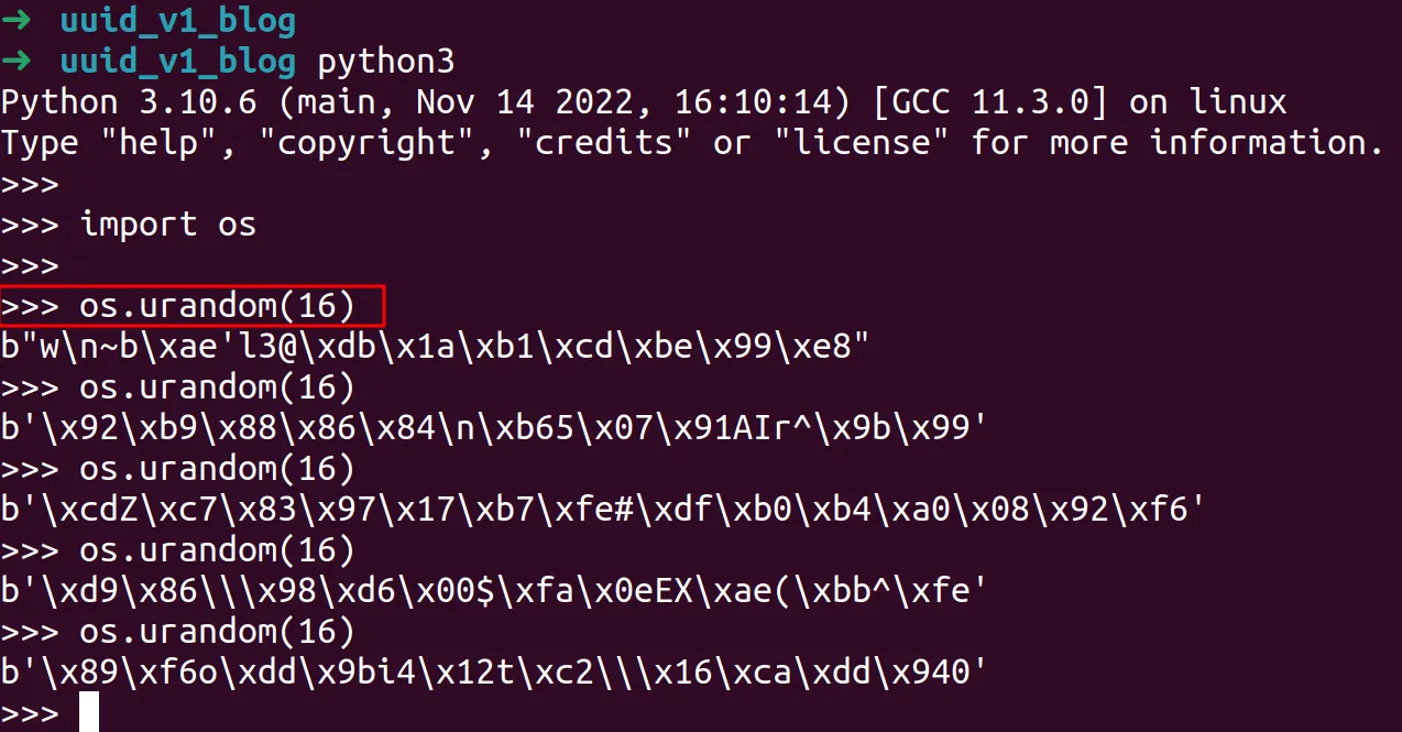 *When I was writing this blog, I wanted to do some debugging of the `uuid` library, as such I copied it into my working folder and renamed it to `my_uuid` so I could set breakpoints more easily.*
