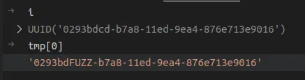 When the execution hits the breakpoint we can see the uuid4() is generating a UUID object of version 4 with a 16 byte random value. We can test this out in a Python3 console to view the effect.