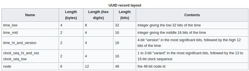 A number of versions of these identifiers are available starting with nil, or Version 0, which is all zeros and then moving on to versions 1 through 5. Discussing all the different versions is outside the scope of this post and we will focus on versions 1 and 4.